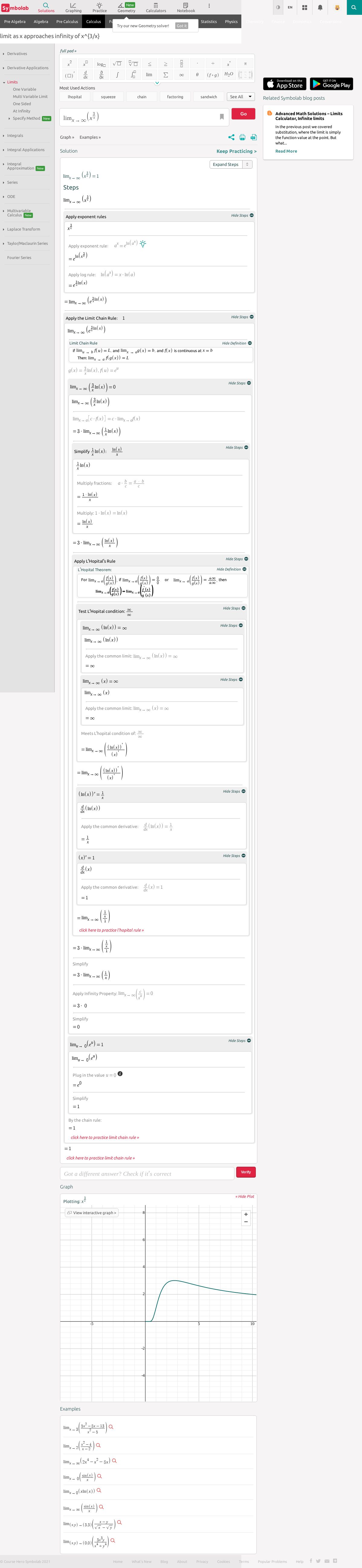 **Example Request in chat:** [<mark style="color:blue;">`https://www.symbolab.com/solver/limit-calculator/%5Clim_%7Bx%5Cto%5Cinfty%7D%5Cleft(x%5E%7B%5Cfrac%7B3%7D%7Bx%7D%7D%5Cright)?or=input`</mark>](https://www.symbolab.com/solver/limit-calculator//lim_%7Bx/to/infty%7D/left\(x^%7B/frac%7B3%7D%7Bx%7D%7D/right\)?or=input)